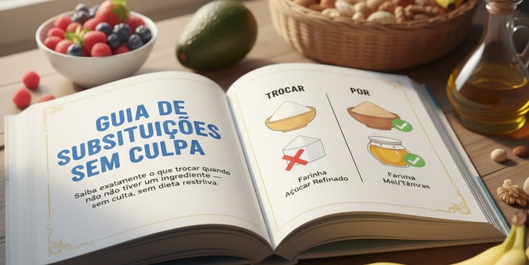 Saiba exatamente o que trocar quando não tiver um ingrediente — sem culpa, sem “comida proibida”.